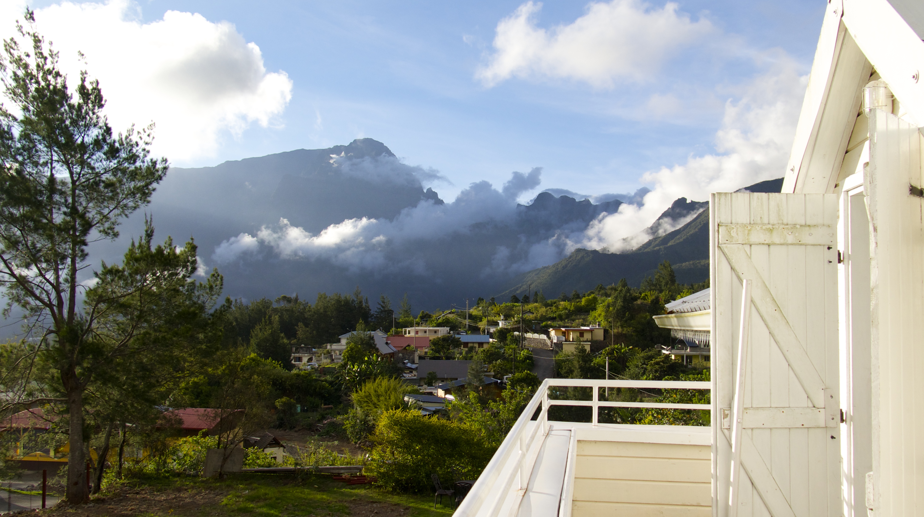 Gabrielle et William ont créé cette chambre d’hôtes de toute pièce. Ils sont parvenus à construire une magnifique maison créole, toute de blanc vêtue, avec ses ouvertures, ses balcons et ses lambrequins. L’intérieur est simple mais recherché. Il fait la part belle aux bois locaux, table en tamarin, plafond en cryptomerias du Japon et de beaux fauteuils créoles. Vous aurez le choix entre 4 chambres, 2 doubles et 2 familiales (jusqu’à 6 personnes). Les propriétaires vous garantissent un accueil chaleureux et seront vous conseiller pour vos itinéraires de randonnées (car il faudra choisir). Quel spectacle de se réveiller dans ce cirque ! Une halte des plus agréables lors d’un autotour à la Réunion. Je recommande vivement cette chambre d’hôte pour son charme et son juste positionnement.