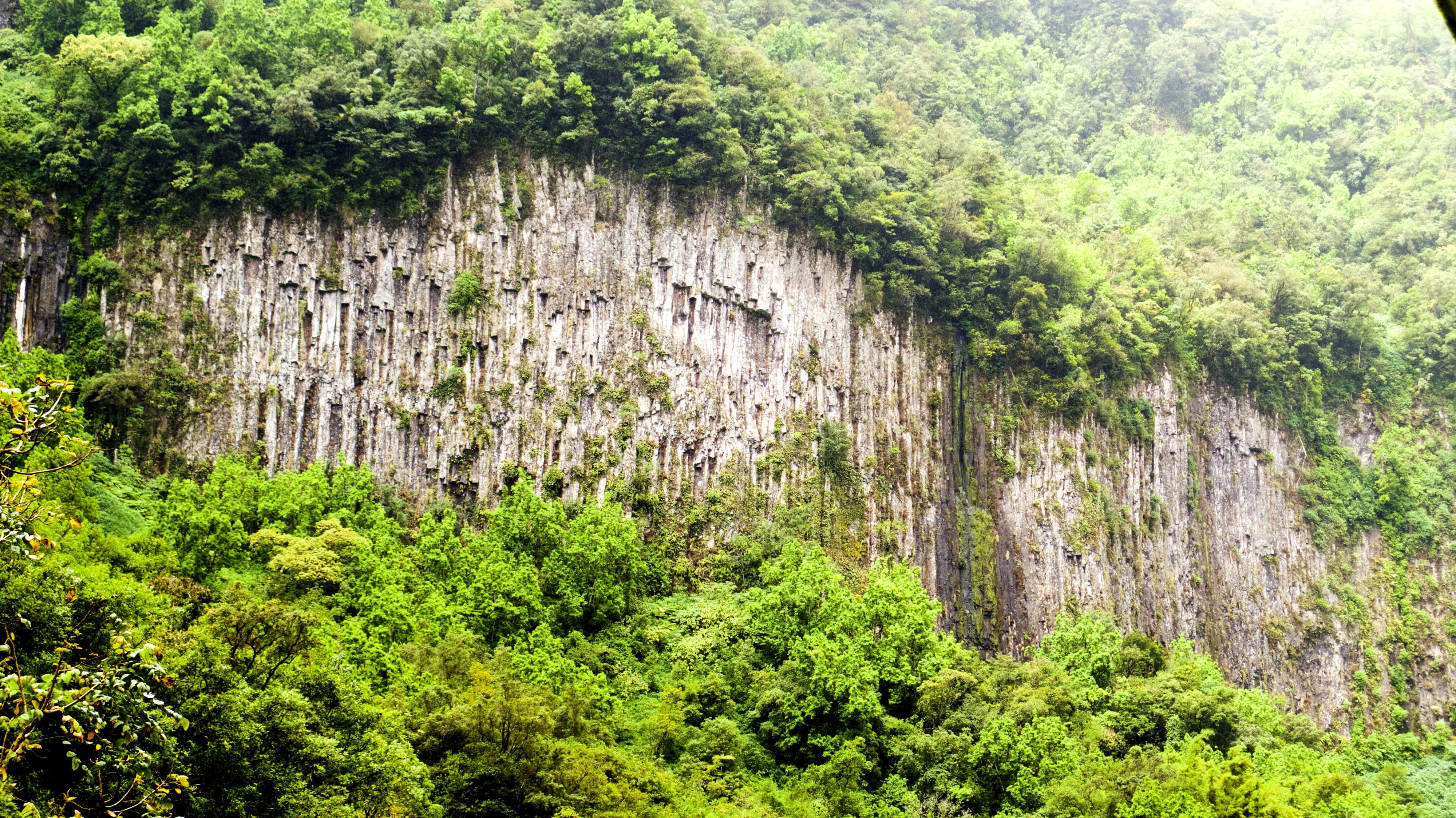 La route vers le volcan débute par une zone de pâturage ressemblant étrangement à l’Auvergne. Après quelques lacets, on arrive au point de vue du Nez de Bœuf, qui offre une vue incomparable sur la rivière des Remparts. Cette partie de l’île est incroyablement préservée. Aucune construction ne brise le paysage.