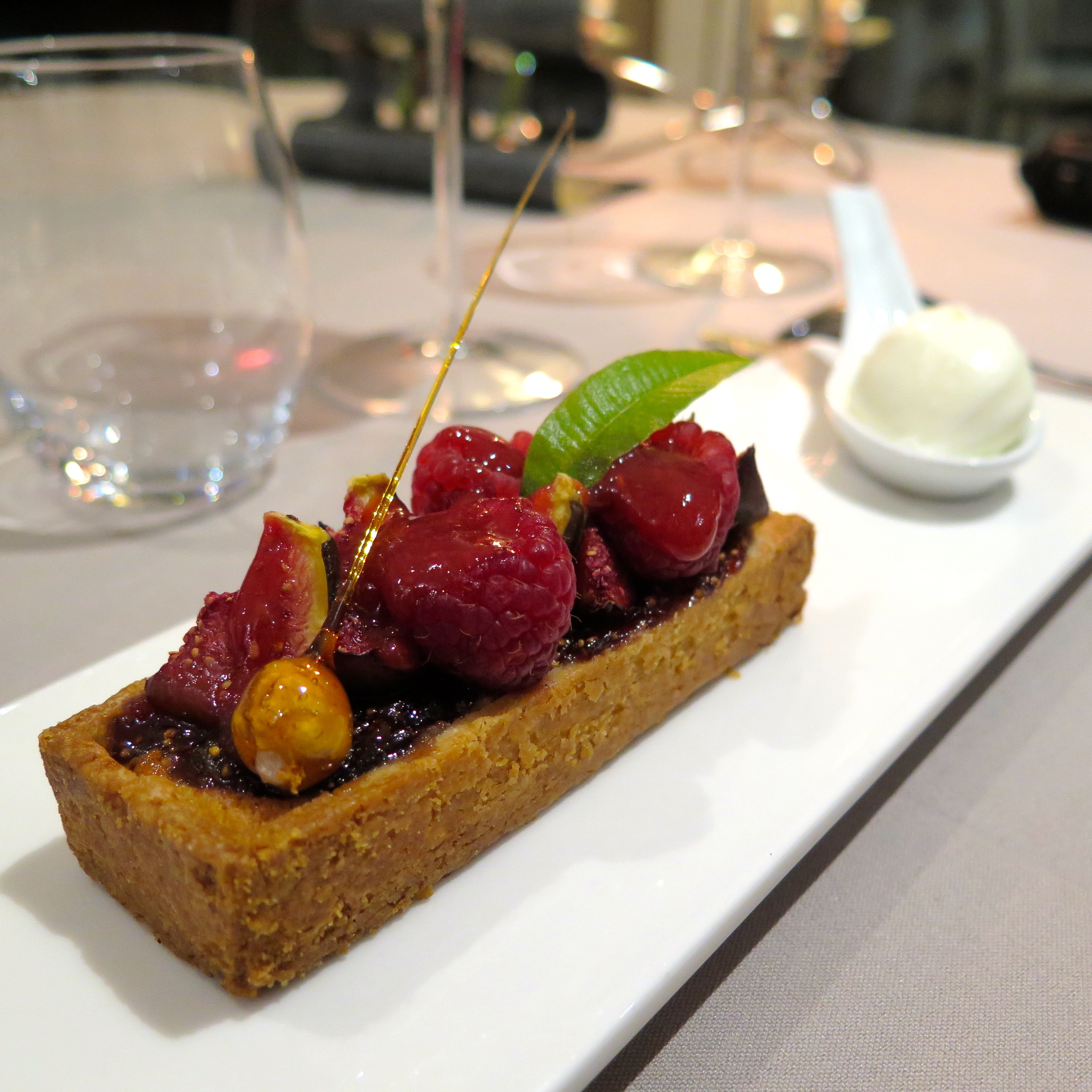 Image précédente Image suivante restaurant-jardins-du-lac5 Tartelette de figues, noisettes, framboises & figues fraiches, sorbet cardomome