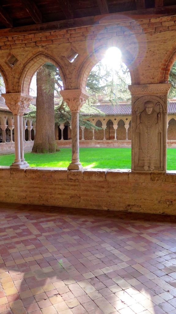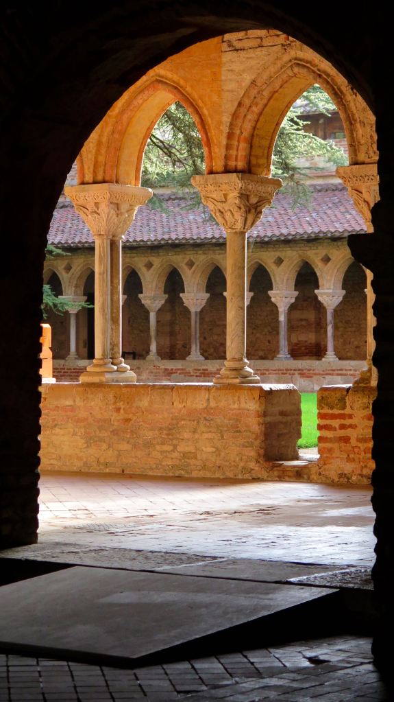 Après cette matinée à flâner en pleine nature, je parcours les quelques kilomètres qui me mènent à Moissac. Une ville tout d’abord connue pour son abbaye classée au patrimoine de l’humanité, qui attire les pèlerins sur les chemins de Saint-Jacques-de-Compostelle. Il est vrai qu’elle en impose de l’extérieur, avec ses murs crènelés et son tympan monumental qui lui donnent des airs de forteresse. Mais c’est surtout le cloître qui est remarquable, par sa taille et par la beauté de ses 76 chapiteaux du XIe siècle, qui nous sont parvenus dans un état de conservation exceptionnel. Notez que toutes les colonnes sont différentes, ce qui n’entache en rien, la perfection de cet ouvrage architectural de l’époque romane. C’est tout simplement le plus ancien cloître historié du monde et le plus beau qu’il m’ait été donné de voir.