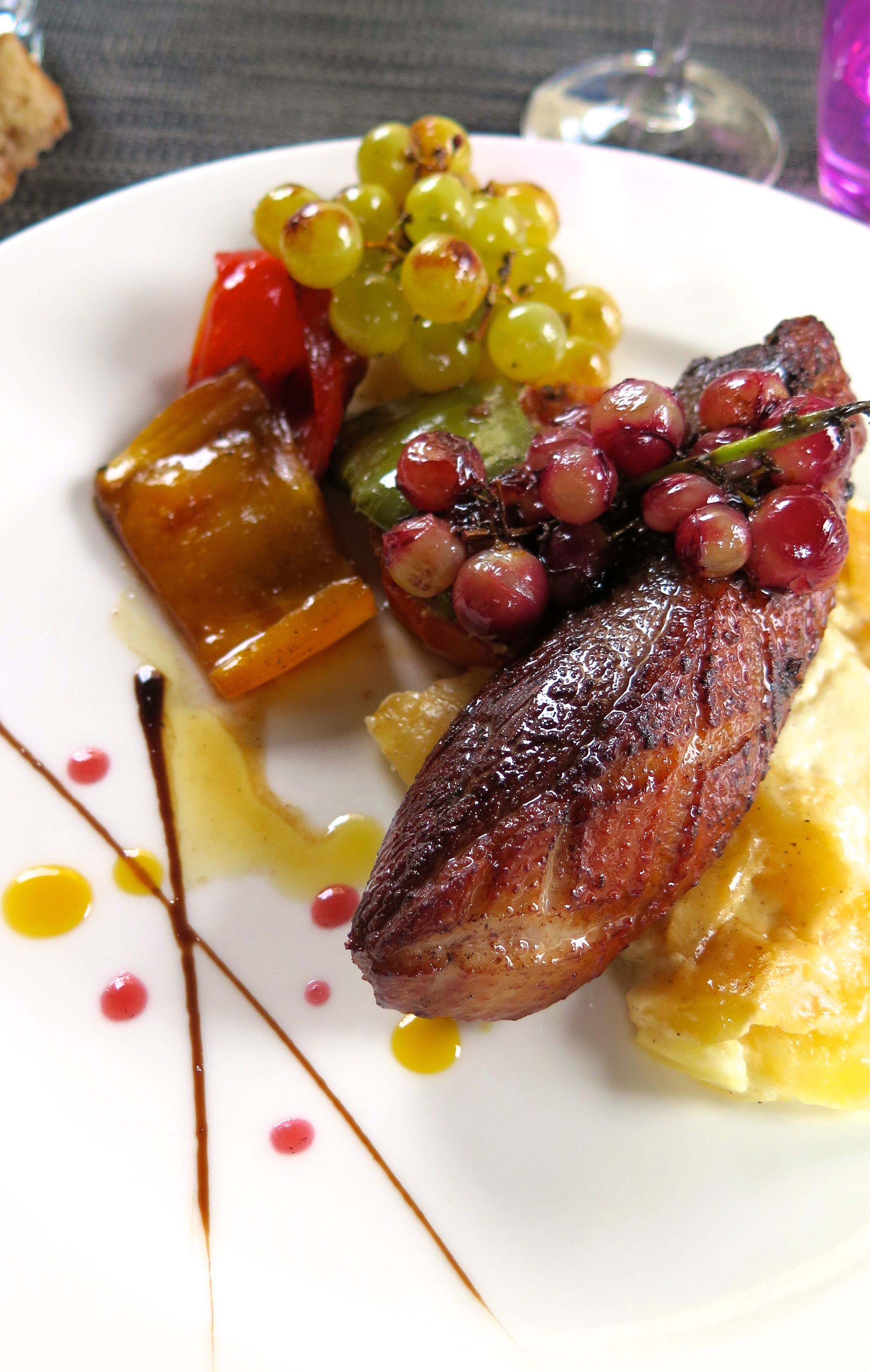 Je déjeune au restaurant le Florentin, dont la terrasse donne directement sur le porche de l’abbaye, permettant d’admirer l’édifice et les nombreux détails du portail. Je ne suis pas déçu par leur magret de canard, accompagné des fameux raisins de Moissac, l’autre emblème de la ville. Ce fut le premier fruit frais de France à être labélisé par une AOC. À cette saison, on en trouve dans tout le pays, mais il faut s’imaginer qu’à l’avènement du chemin de fer, le chasselas de Moissac était exporté par wagon entier à travers l’Europe et fit la gloire de la commune.