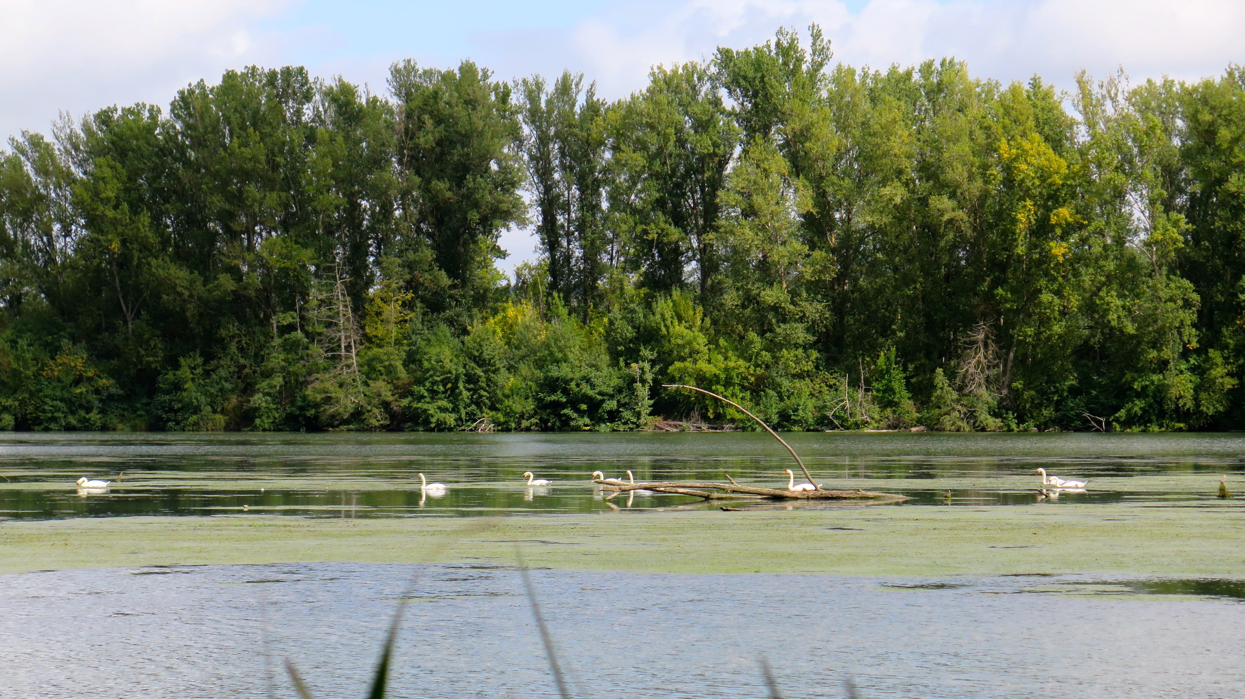 En ce mois de septembre, le jour se lève et le soleil fait son apparition pour la première fois depuis le début de mon périple. Je suis enchanté, d’autant plus que mon étape d’aujourd’hui ne fait que neuf kilomètres, ce qui me laissera le temps de visiter et de profiter de la nature. Justement, je me trouve à Saint-Nicolas-de-la-Grave, au confluent du Tarn et de la Garonne, dans le département du même nom. En se rejoignant, ils forment un plan d’eau immense. C’est une base de loisirs où l’on peut pratiquer la voile et faire du canoë, mais c’est surtout une réserve ornithologique importante. Je choisis de parcourir le sentier pédestre ponctué de nombreux panneaux sur la faune et la flore. Rassurez-vous, le sentier n’est pas très long. Il offre des vues relaxantes sur le plan d’eau, dispose d’observatoires et vous garantit quelques rencontres sauvages.