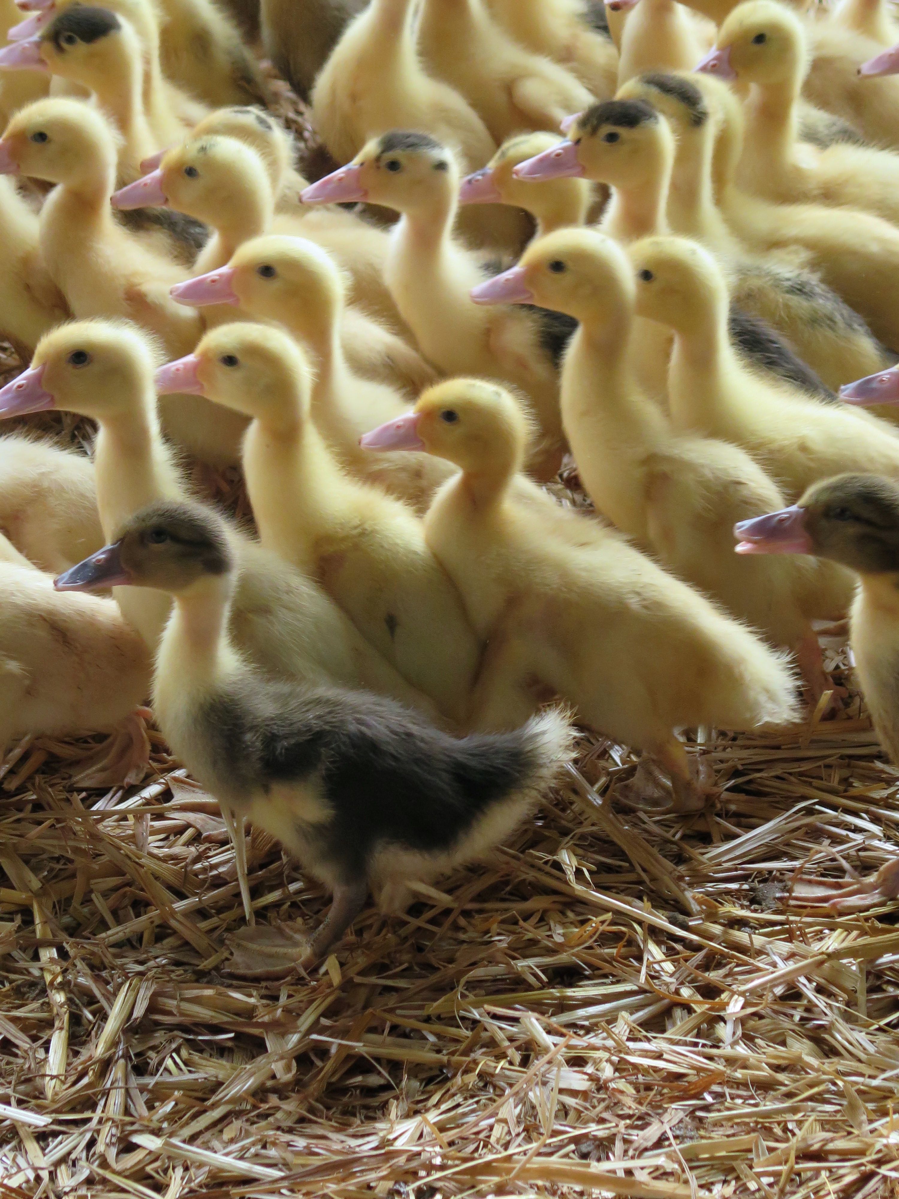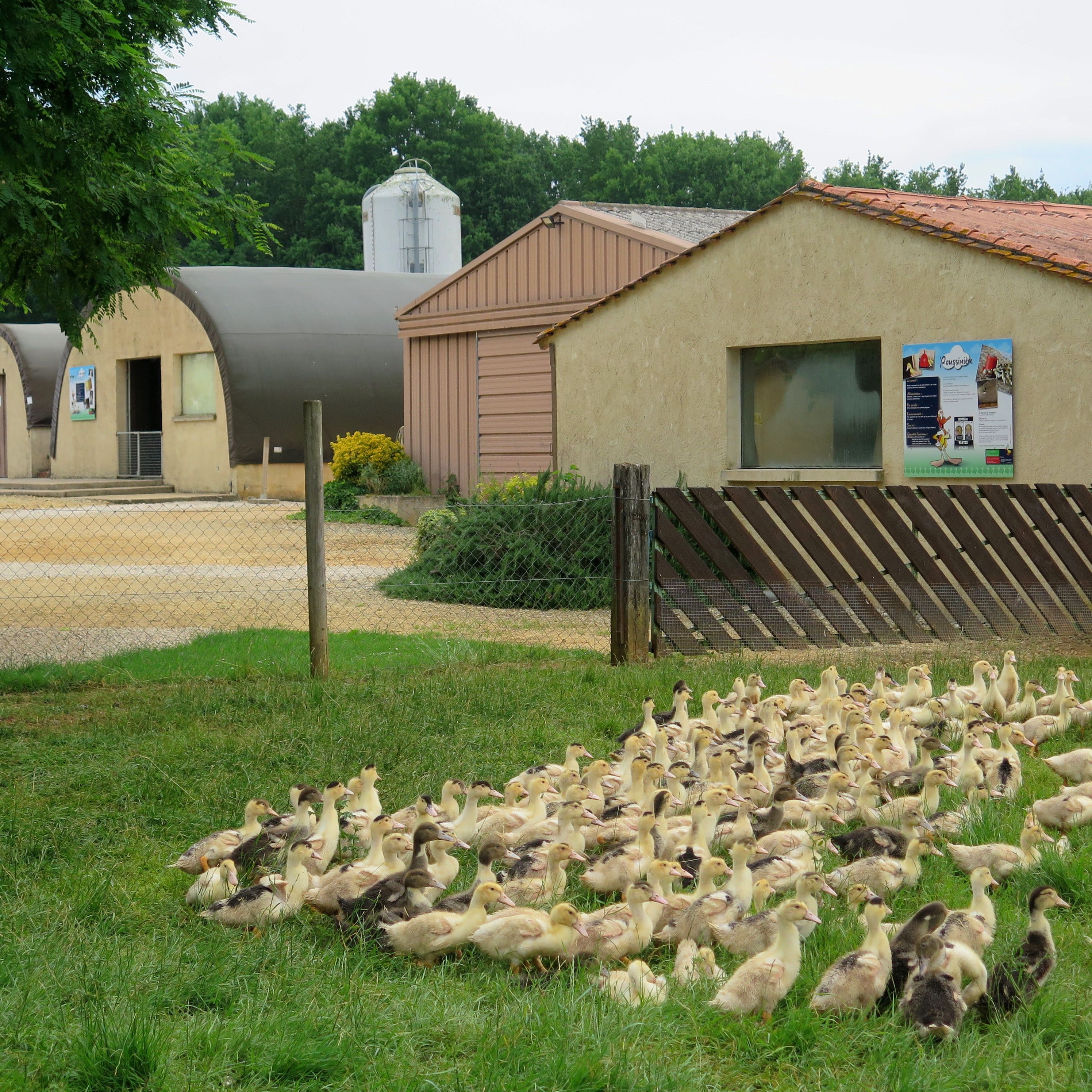 Notre première journée fut entièrement consacrée au fameux canard landais et à son parcours d’élevage. Il né mulard, un croisement entre le canard de Barbarie et la canne de Pékin. Il grandit pendant au moins 102 jours, d’abord bien au chaud dans des bâtiments, puis rapidement en plein air. Malheureusement, les normes sanitaires ont fait disparaître les marres (à canard) dont ils raffolaient. Ils doivent donc se contenter de la pluie et du beau temps, ainsi que de l’ombre des quelques arbres qui sont replantés. Mais ils ont beaucoup d’espace, c’est tout ce qui importe.